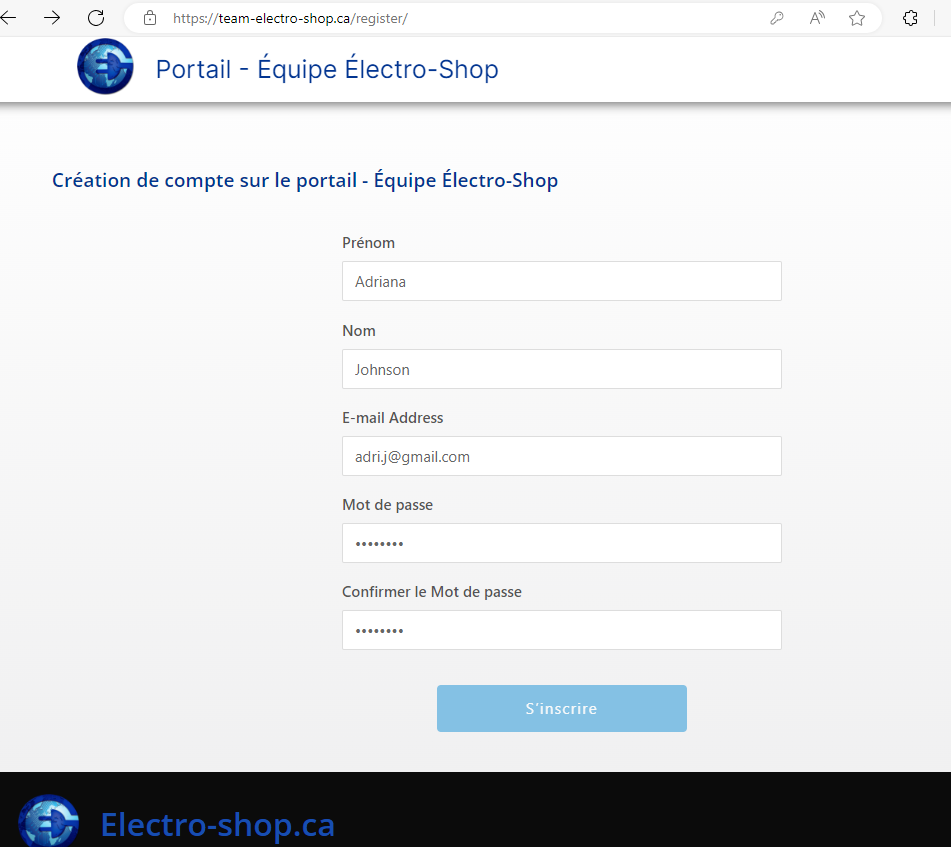 Créer un compte sur notre portail : S’inscrire – Portail – Équipe Électro-Shop (team-electro-shop.ca)