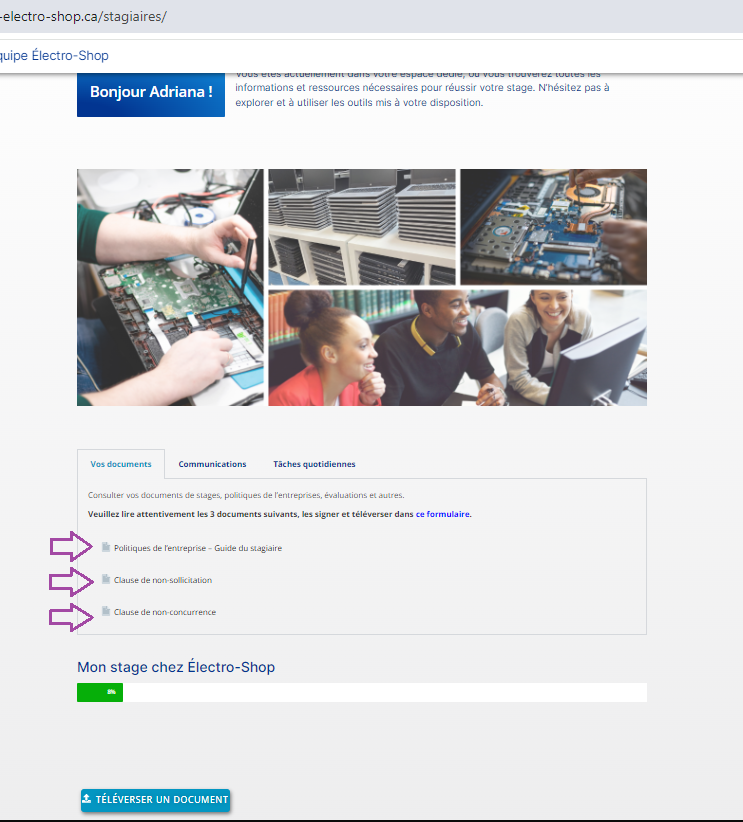 Téléverser documents de stage