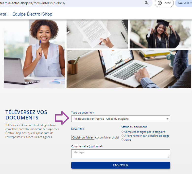 Lorsque nous recevrons votre formulaire rempli, un membre du personnel aprouvera votre inscription et vous aurez accès au portail du stagiaire.